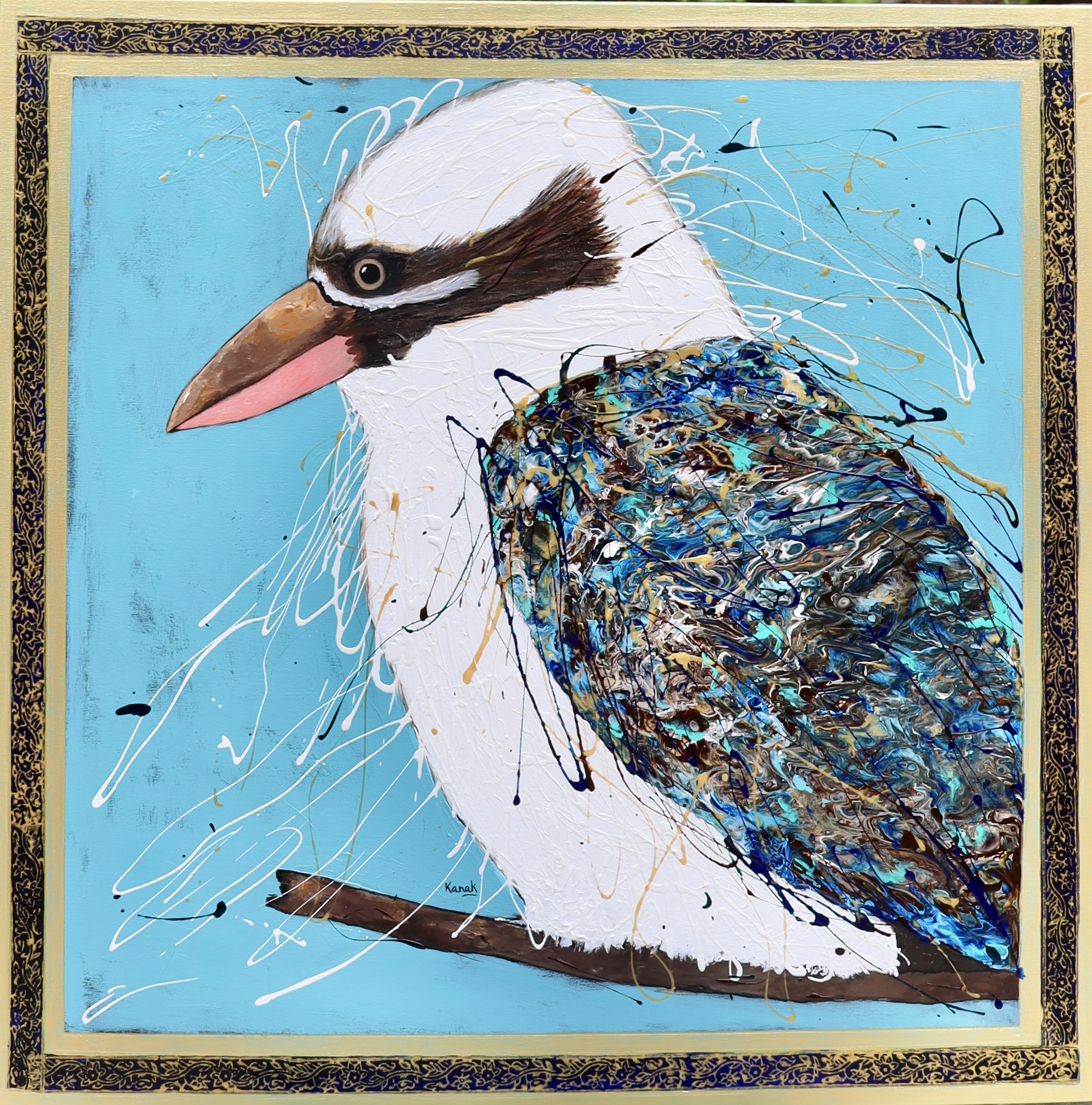 Original Australian Kookaburra Painting with hand painted Gold Detailing