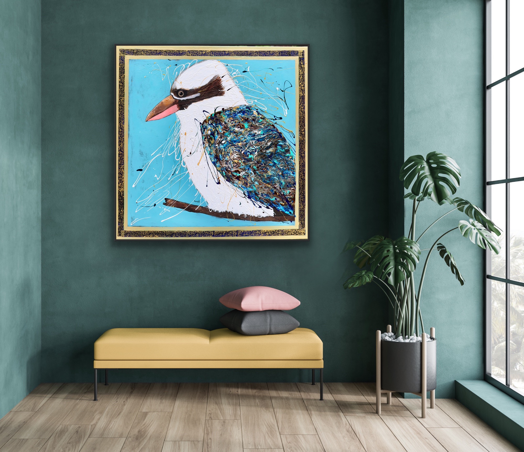 This original painting comes with a certificate of authenticity and is perfect for collectors and lovers of Australian wildlife art, luxury interiors, or statement artworks that evoke emotion. The Gilded Kookaburra brings a touch of enchantment, natural wonder, and refined sophistication to any space.